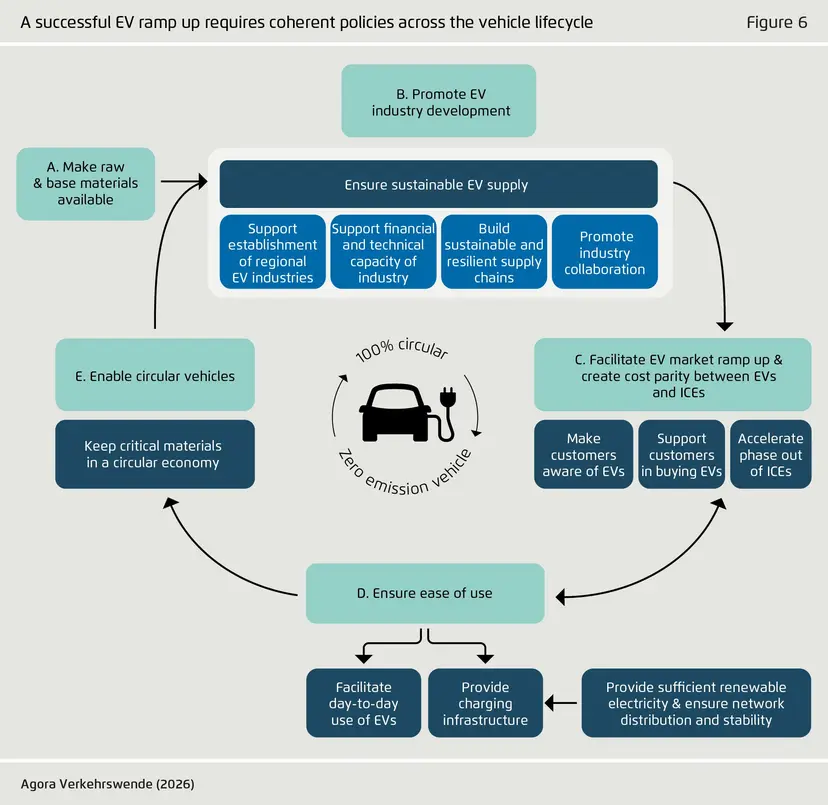 Analýza zároveň ukazuje, že štáty s konkrétne stanovenými cieľmi elektromobility dnes pokrývajú iba približne 34 % globálnych emisií z dopravy. Niekoľko veľkých výrobcov emisií vrátane významných automobilových trhov zatiaľ žiadne záväzky neprijalo. Napriek tomu je zrejmé, že počet krajín s jasnou stratégiou rýchlo rastie. Elektromobilita sama o sebe na splnenie klimatických cieľov nestačí, ale bez jej masívneho rozšírenia sa cieľ Parížskej dohody v doprave dosiahnuť nedajú.